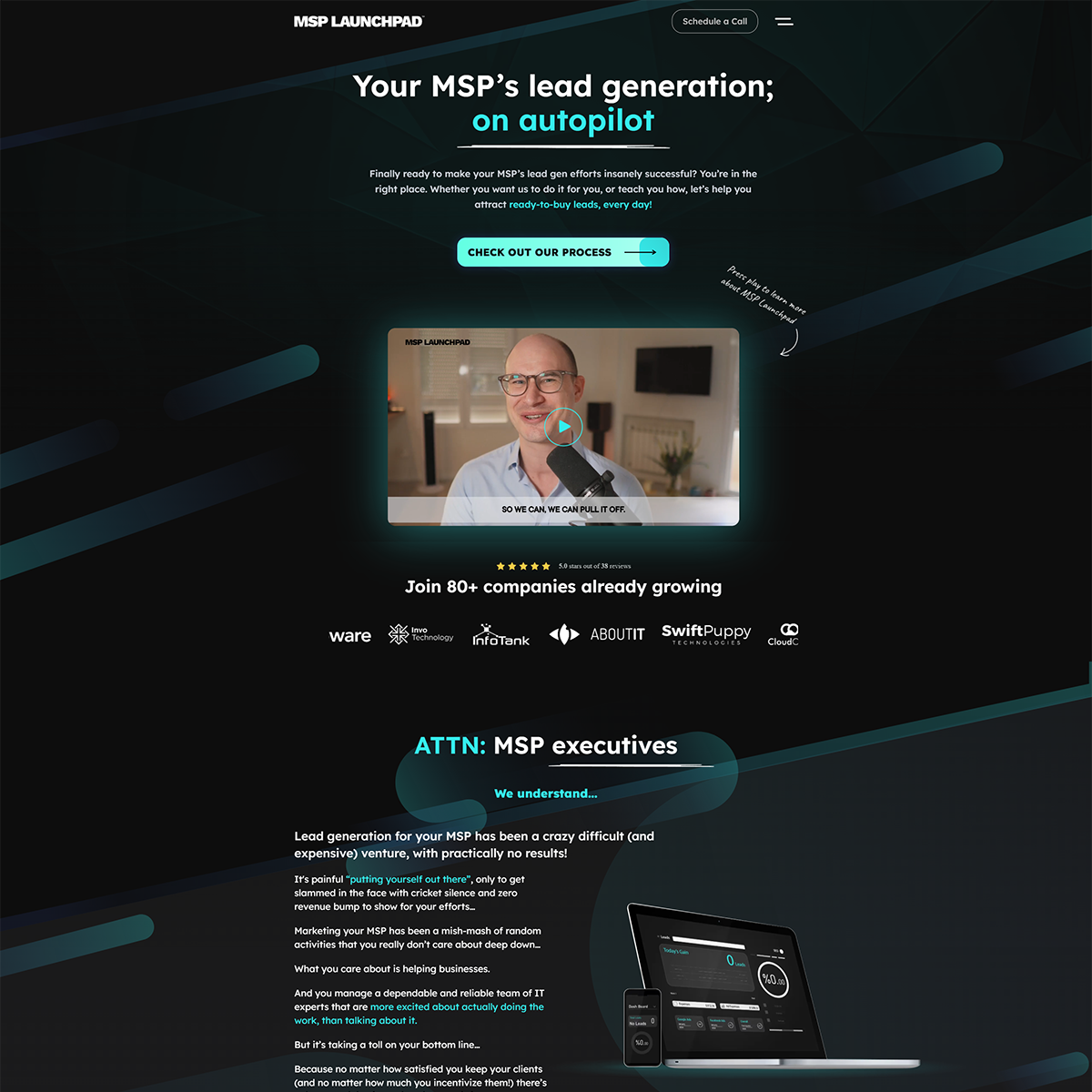 MSP Launchpad offers a focused, aggressive SEO service aimed at helping MSPs own their local market. Their approach combines keyword strategy, website optimization, and clear offer framing to generate real sales conversations—not just traffic. Their messaging speaks directly to MSPs who are tired of “spray and pray” tactics and want a more deliberate path to pipeline growth.