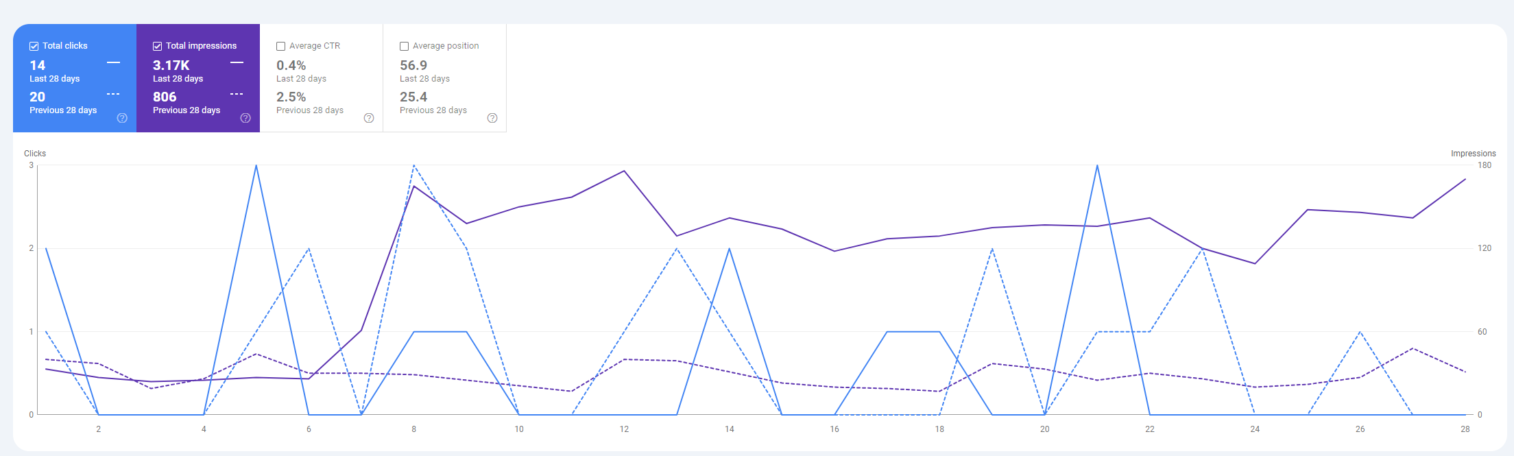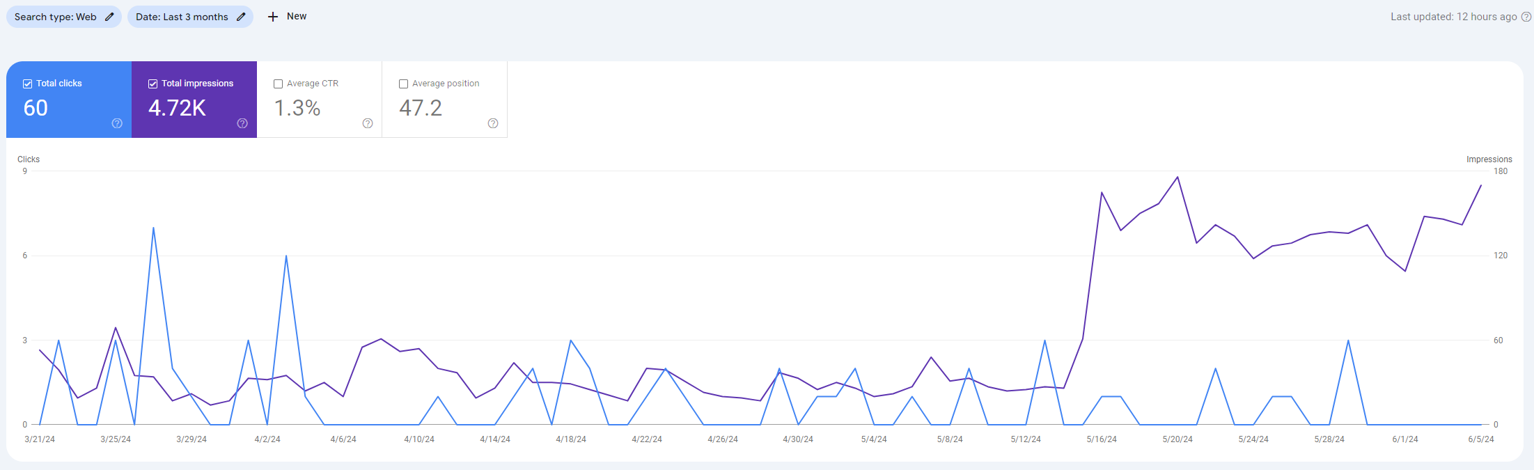 - Generating impressions and clicks on high intent keywords that the site was not previously ranking for.
