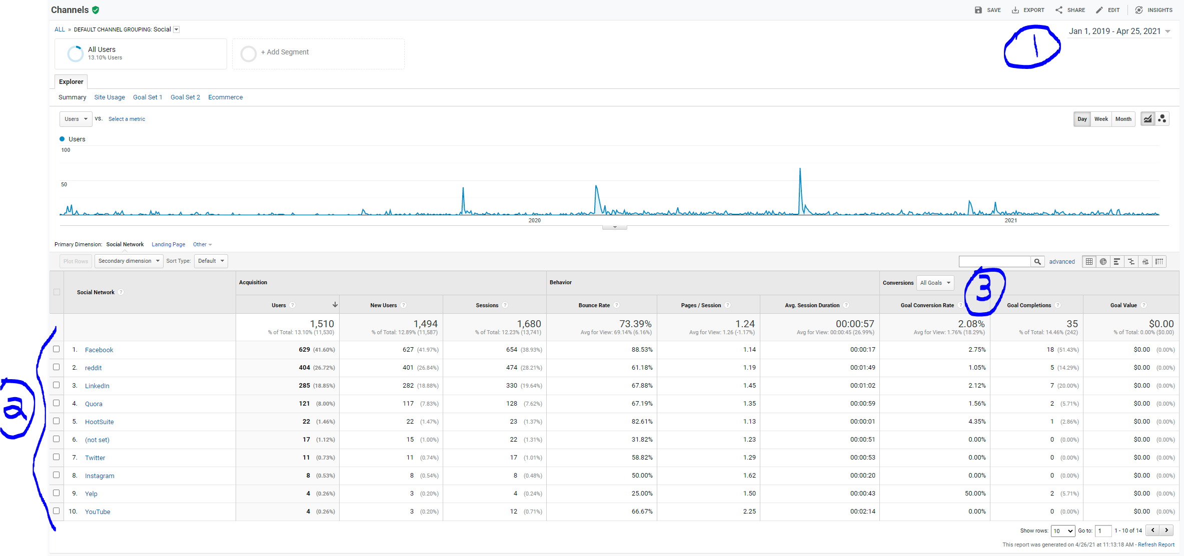 You may only be getting a fraction of the picture when it comes to social media, but Google Analytics is still valuable. It can give you directional feedback on the success of platforms, landing pages, conversion rates, and more. Without further ado, let’s take a look at a couple of the reports that can provide you with this information.