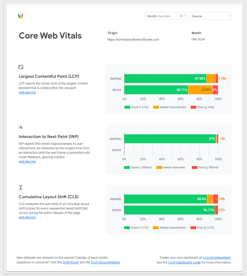 Get a feel for how your website is performing by entering your domain name into the CrUX report.