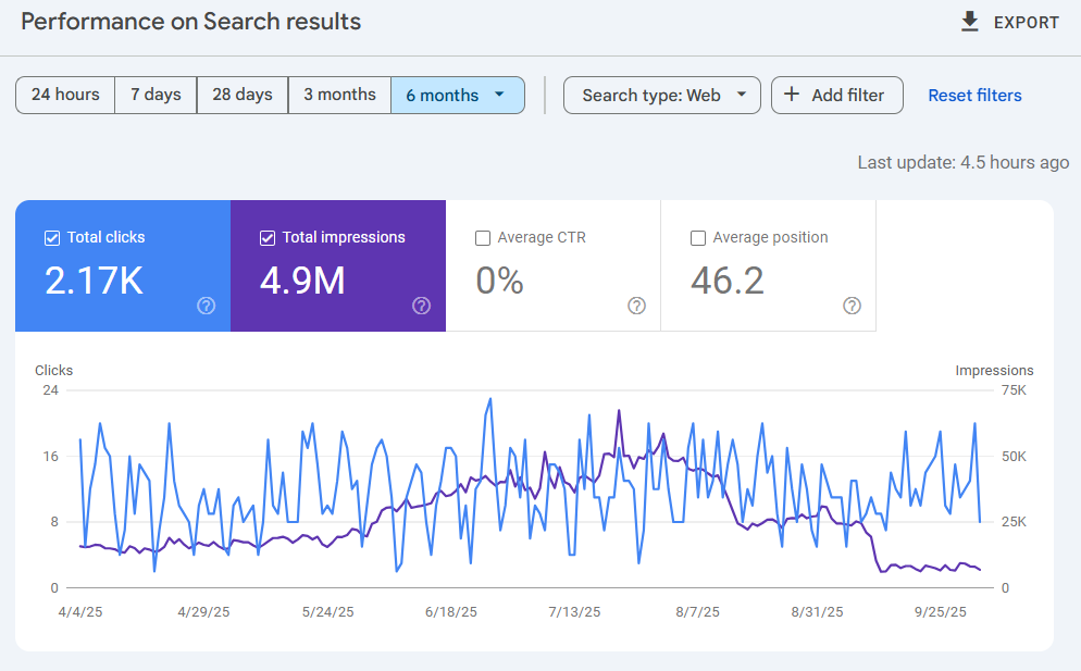 If you’re a client of Tortoise and Hare Software, you may notice a decline in your search impressions when reviewing your Google Search Console data, especially in trailing twelve-month views. This is not a cause for concern.